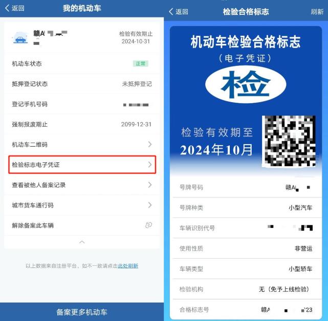 機動車檢驗標志電子憑證與紙質憑證具有同等效力。 在駕車遇到交通民警執法檢查時,駕駛人可以主動出示檢驗標志電子憑證,民警將通過警務執法終端掃描電子憑證二維碼,核查電子憑證有效性和機動車狀態。