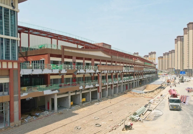今天上午,記者來到項目施工現(xiàn)場,一座大氣、美觀的商業(yè)綜合體已初具雛形,建筑整體采用紅白配色,外墻采用閩南紅磚,不僅具有泉州特色,更兼具現(xiàn)代設(shè)計感。設(shè)備安裝、外立面裝修、路面硬化……工人們在各自區(qū)域忙碌著,現(xiàn)場一片熱火朝天的建設(shè)景象。